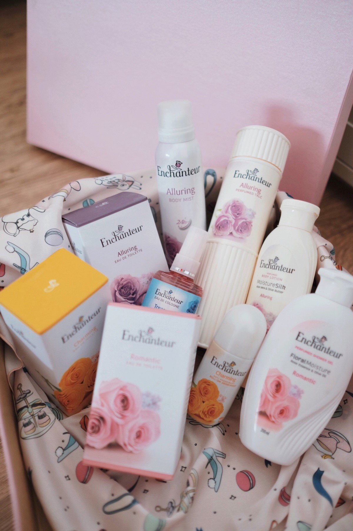 Last week I got a package from Enchanteur, and they send me a wide variety of their products, Enchanteur Perfumed Talc, Enchanteur Roll-On Deodorant, Enchanteur Body Mist, Enchanteur Perfumed Body Lotion, Enchanteur Perfumed Shower Gel, Enchanteur Cologne and last Enchanteur Eau De Toilette. And today I’m going to do a review on the Enchanteur Products. But first let me tell you all a bit of about it, so Enchanteur is a multinational brand which is distributed in several countries, like Malaysia, Vietnam, Singapore, Hong Kong, and Middle East. Enchanteur is a range of quality and timeless French-Inspired fine fragrances & fragranced toiletries made especially for the young and romantic modern woman.